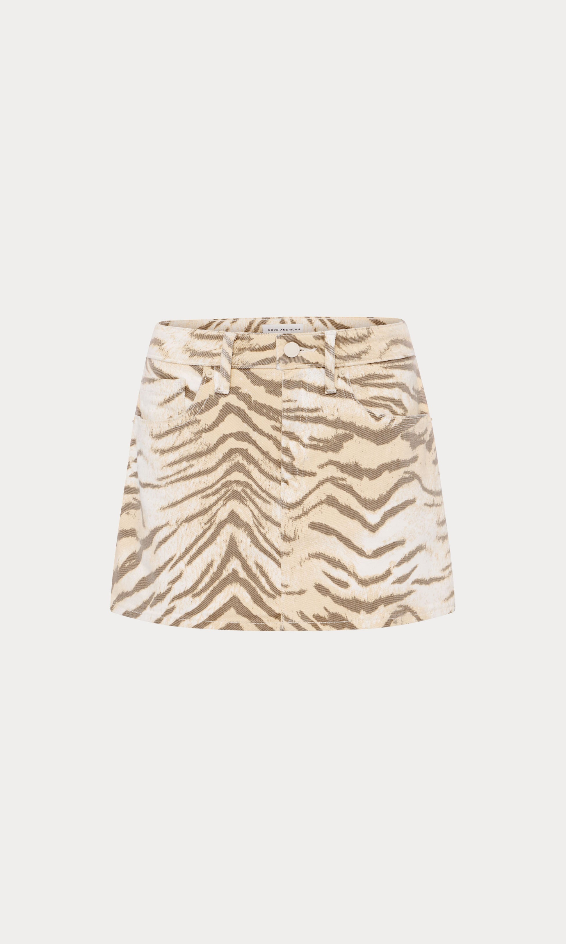 The iconic '90s mini skirt, now in tiger print. A vintage-inspired fit sits at the waist with straight, clean-cut lines. Made from our signature rigid denim that holds you in and forms to your body over time.