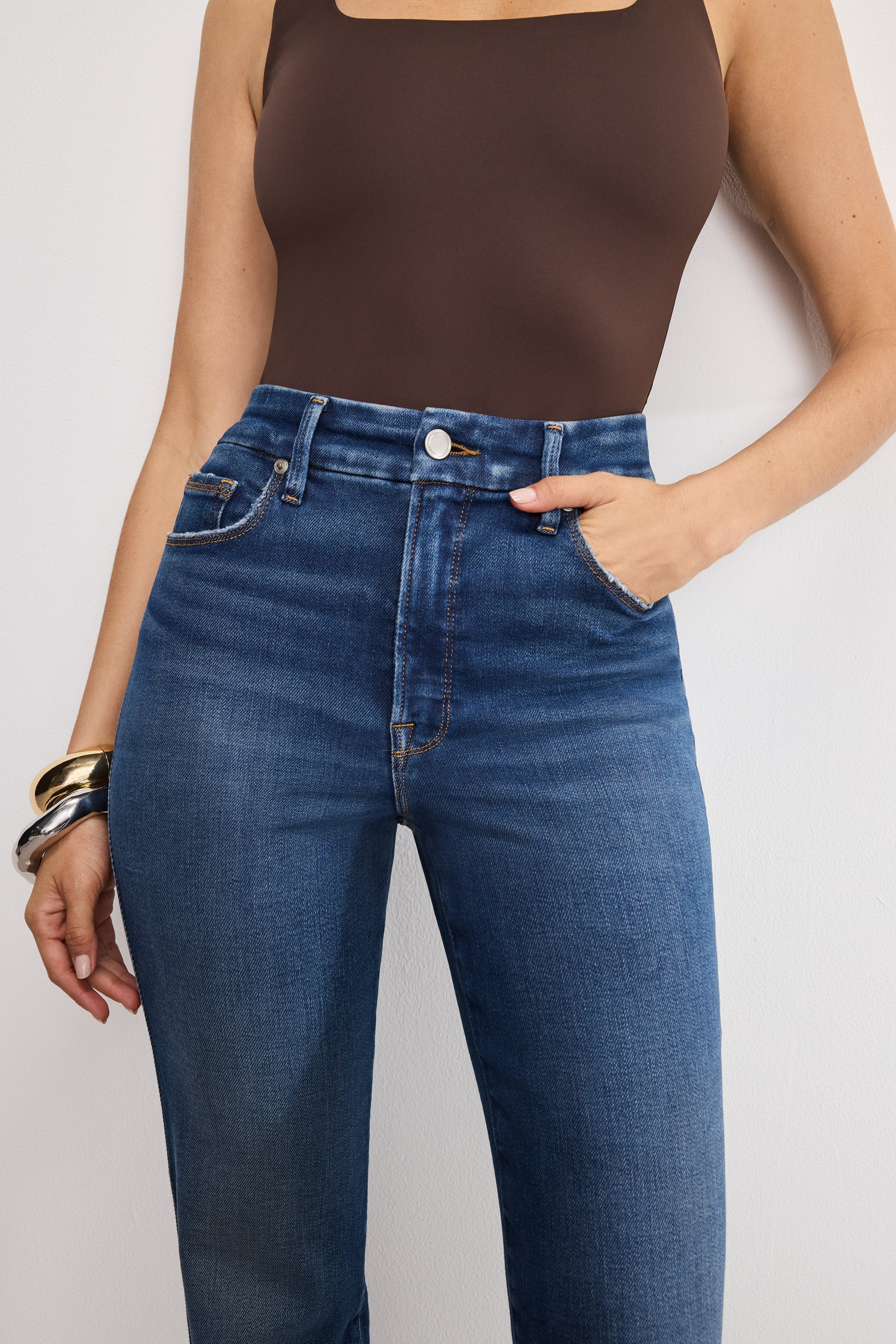 An iconic curve defining straight style, designed to be fitted through the hip and thigh with a timeless straight fit from thigh to ankle. Good Curve Straight Jeans feature a super high-rise waistline and strategically placed contour seams to accentuate your curves and define you silhouette.